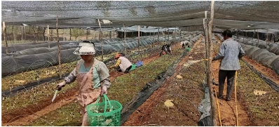 在這充滿希望的季節里,鶴慶縣六合鄉松坪村羊肚菌種植基地一壟壟羊肚菌破土而出,頭戴獨特的褐色“網格帽”,在陽光下閃爍著光芒,為松坪村繪就一幅生機勃勃的致富畫卷。