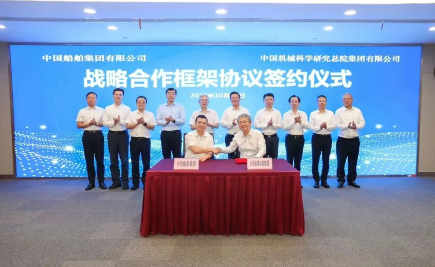 10月17日,中國船舶集團有限公司與中國機械科學總院集團有限公司在上海簽署戰略合作框架協議。中船集團黨組書記、董事長徐鵬,中國機械總院黨委書記、董事長王德成出席簽約儀式。中船集團黨組成員、副總經理彭原璞,中國機械總院集團副總經理姜超分別代表雙方在協議上簽字。簽約前,雙方就進一步加強溝通交流、深化多領域合作進行了交流探討。