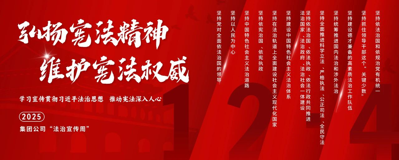 今年12月4日是第十二個(gè)國(guó)家憲法日。中國(guó)船舶集團(tuán)有限公司深入貫徹落實(shí)中央宣傳部、司法部、全國(guó)普法辦《2025年全國(guó)“憲法宣傳周”工作方案》部署要求,以“學(xué)習(xí)宣傳貫徹習(xí)近平法治思想,推動(dòng)憲法深入人心”為主題,精心組織開展2025年法治宣傳周系列活動(dòng)。活動(dòng)將學(xué)習(xí)貫徹習(xí)近平法治思想、習(xí)近平文化思想及憲法精神,與法治央企建設(shè)要求以及集團(tuán)“懸規(guī)植矩 循序善治”特色法治文化深度融合,為加快建設(shè)世界一流船舶集團(tuán)厚植法治土壤、注入強(qiáng)勁法治動(dòng)能。