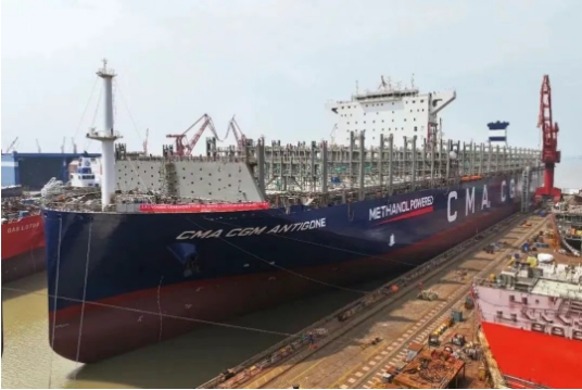 起浮的則包括17.5萬立方米MARK Ⅲ FLEX薄膜型液化天然氣(LNG)運輸船和16000TEU甲醇雙燃料動力大型集裝箱船系列船2號船。