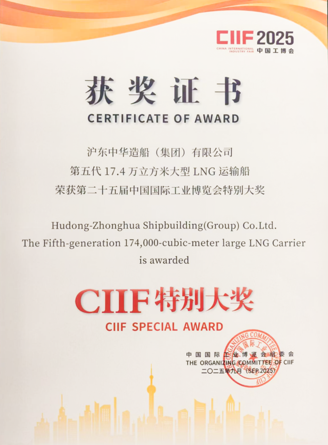 近日,中國船舶集團有限公司旗下滬東中華自主研發(fā)的第五代“長恒系列”17.4萬立方米雙燃料動力低速推進(jìn)LNG船,從數(shù)百個參賽項目中脫穎而出,摘下第二十五屆中國國際工業(yè)博覽會唯一的CIIF特別大獎。