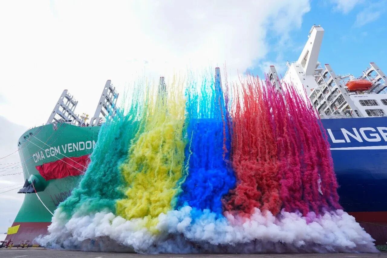 12月12日,中國船舶集團有限公司旗下滬東中華為法國達飛海運集團建造的全球最大24000TEU級液化天然氣(LNG)雙燃料動力集裝箱船“達飛 旺多姆”號提前8個半月命名交付。這標志著滬東中華全面完成2025年生產經營任務,也是其交付的第100艘大型集裝箱船。