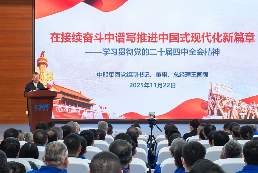 黨組成員在宣講會上強調,學習好貫徹好黨的二十屆四中全會精神是當前和今后一個時期的重大政治任務。要更加緊密地團結在以習近平同志為核心的黨中央周圍,全面貫徹習近平新時代中國特色社會主義思想,把思想和行動統一到黨中央對形勢的科學判斷和決策部署上來,狠抓各項工作落實。要堅持創新驅動,抓住新一輪科技革命和產業變革歷史機遇,加快推進高水平科技自立自強;要加快提質升級,堅持智能化、綠色化、融合化方向,爭當建設現代化產業體系的排頭兵;要全面深化改革,進一步解決制約高質量發展的卡點堵點問題,持續增強發展動力和活力;要強化根魂優勢,堅持和加強黨的領導、黨的建設,以高質量黨建引領保障高質量發展,確保2025年和“十四五”規劃目標任務完成、“十五五”良好開局,為以中國式現代化全面推進強國建設、民族復興偉業貢獻中船力量。